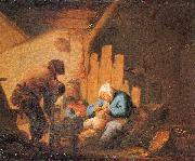Painter, draughtsman and etcher. According to Houbraken's rather unreliable biography, he was a pupil concurrently with Adriaen Brouwer of Frans Hals in Haarlem. Hals influenced him very little, whereas Brouwer, who was described as 'known far and wide' as early as 1627, had a decisive influence on the evolution of Adriaen van Ostade's always idiosyncratic portrayal of peasant life. The first documentary mention of Adriaen van Ostade as a painter is in 1632 (Schnackenburg, 1970). Most of his paintings are signed and dated, the earliest firmly dated example being the Peasants Playing Cards (1633; St Petersburg, Hermitage). Sight Oil on panel