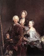 French painter active in Prussia. He studied with his father, the portrait painter Thomas Pesne (1653-1727), and with his maternal great-uncle, Charles de La Fosse. In 1703, as a pupil at the Academie Royale, he would have won the Prix de Rome with his Moses and the Daughters of Jethro (untraced), had not Jules Hardouin Mansart, adviser to the Academie, deemed all entries that year unworthy. Nevertheless Pesne left for Italy, making the acquaintance of Jean Raoux in Venice and being allowed the use of a studio in Rome by Charles Porson, Director of the Academie de France. While in Venice, Pesne painted the portrait of Friedrich Ernst von Knyphausen Self-portrait with Daughters sg 1754