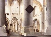 Pieter Saenredam b. 1597, Assendelft, d. 1665, Haarlem,Painter and draughtsman, son of Jan Saenredam. His paintings of churches and the old town halls in Haarlem, Utrecht and Amsterdam must have been appreciated by contemporary viewers principally as faithful representations of familiar and meaningful monuments. Yet they also reveal his exceptional sensitivity to aesthetic values; his paintings embody the most discriminating considerations of composition, colouring and craftsmanship. His oeuvre is comparatively small, the paintings numbering no more than 60, and each is obviously the product of careful calculation and many weeks of work. Their most striking features, unusual in the genre, are their light, closely valued tonalities and their restrained, restful and delicately balanced compositions. These pictures, always executed on smooth panels, are remarkable for their sense of harmony and, in some instances, serenity. Here, perhaps, lies a trace of filial fidelity to the Mannerist tradition of refinement and elegance, of lines never lacking in precision and grace. But Mannerist figures and the more comparable components of strap- and scrollwork embellishment lack the tension and clarity of Saenredam's designs, which also have a completeness reminiscent of the fugues of Gerrit Sweelinck (1566-?1628). the lnterior of the buurkerk at utrecht mk247